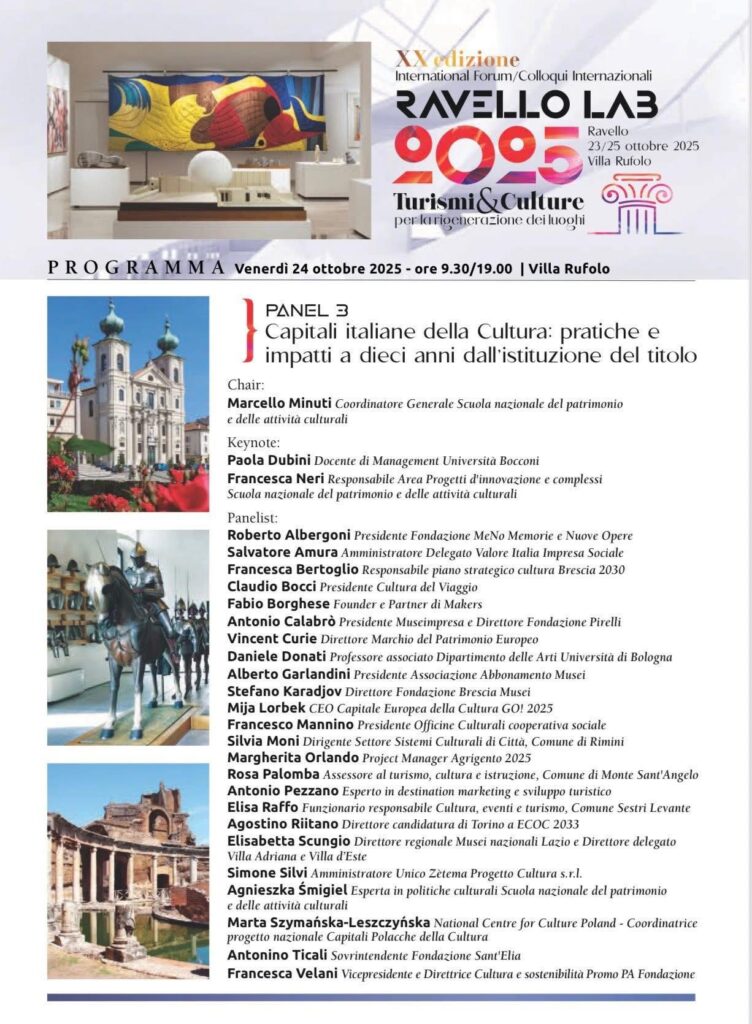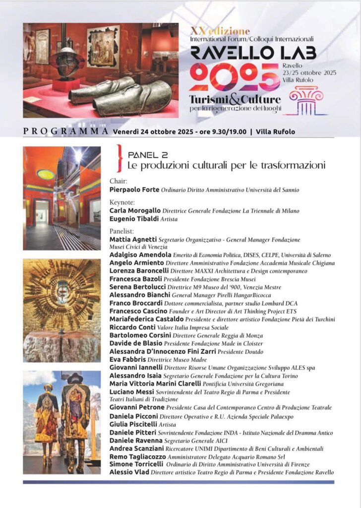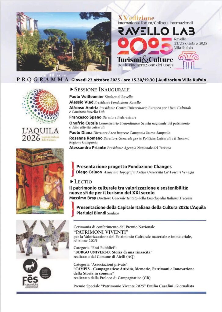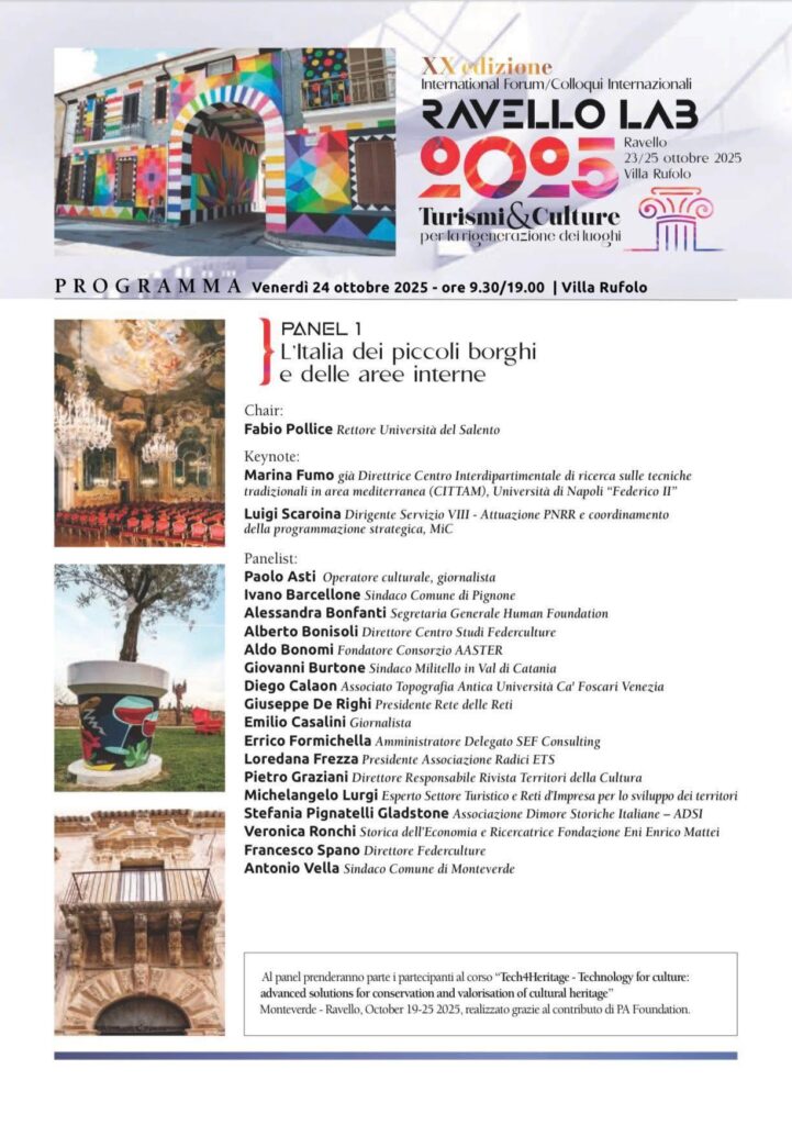 Dal 23 al 25 Ottobre 2025, Il Presidente della Rete Destinazione Sud , del Gruppo Turismo Alberghi e Tempo Libero di Confindustria Salerno e Ceo del Borgo dei Normanni e Palazzo Borriello – Michelangelo Lurgi – ha partecipato alla 20 edizione di Ravello Lab. Tre giorni di confronto che hanno visto partecipare, nei 3 Panel di lavoro, tecnici ed esperti con esperienze uniche ed importanti, tutti riuniti per provare a dare idee e trovare soluzioni da trasformare in raccomandazioni da proporre alle istituzioni nazionali.